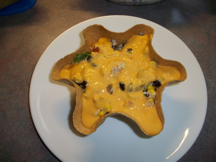 Top with Queso con salsa warmed in the microwave oven. Enjoy!