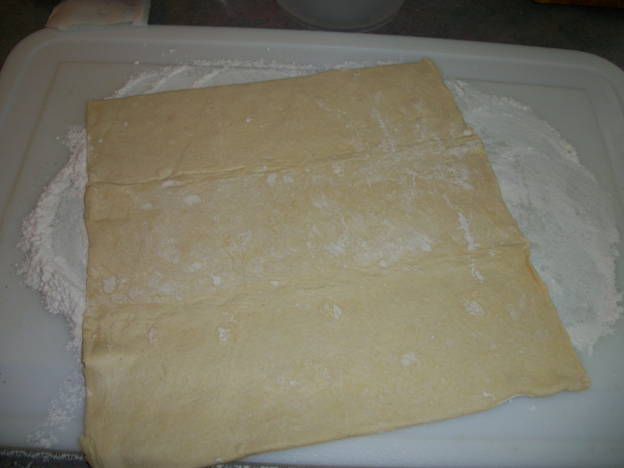 Brush egg wash over puff pastry.