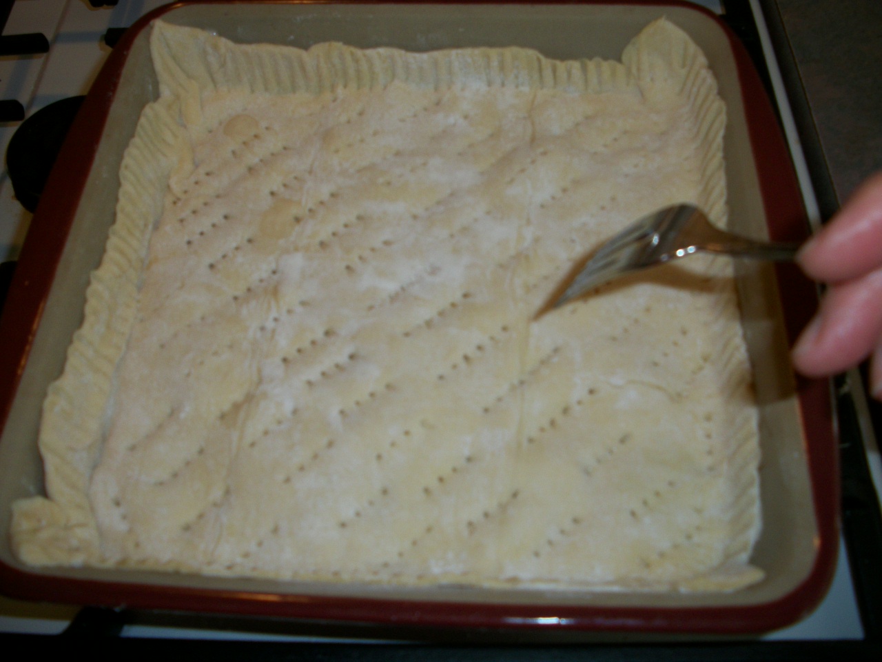 Crimp crust and poke vent holes using the tines of a fork.
