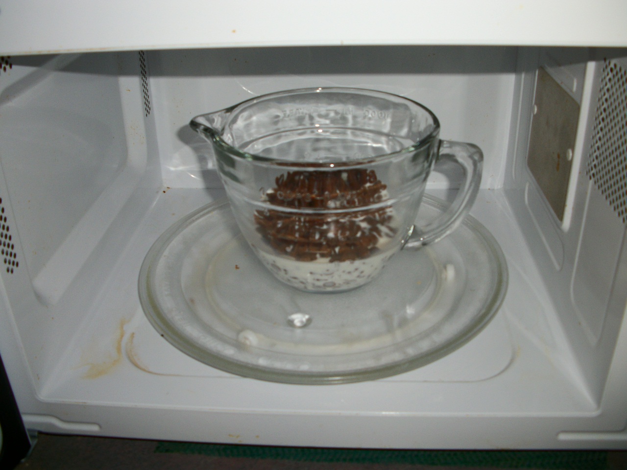 - While donuts bake, make glaze by combining chips and milk in a microwave-safe bowl. Microwave in 1-minute increments, stirring to form the glaze.*