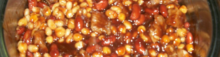 Here’s an easy, nutritious way to stretch a buck: BBQ Beef and Beans. I modified the recipe I got from my friend Chef Gary. If you take a little help from the grocery store (canned beans, rinsed and drained, and jarred barbecue sauce of your choice), you need only ten minutes to get this into the slow cooker. This is one of my favorites to take to a potluck dinner.