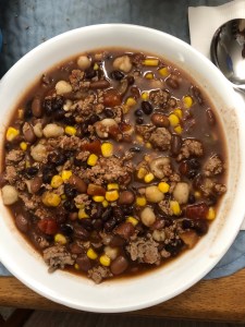 Social media abound with recipes for taco soup, also known as 5-can soup. It’s a good pantry recipe that requires few fresh items. The 5 cans refer to two different cans of beans, a can of hominy, a can of Rotel diced tomatoes and green chilies, and a can of whole kernel corn. (The ingredients vary, but it’s basically a soup with similar elements)