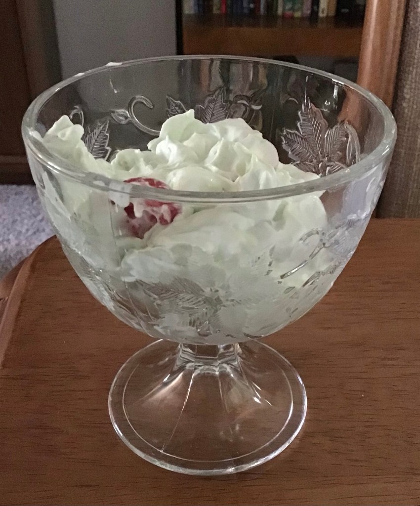 I recently came across my copy of the recipe, handwritten some 40 years ago by Rachel, my late mother-in-law. Making Watergate Salad today was like a visit with her. So, in Rachel’s memory, I made her version of the recipe.
