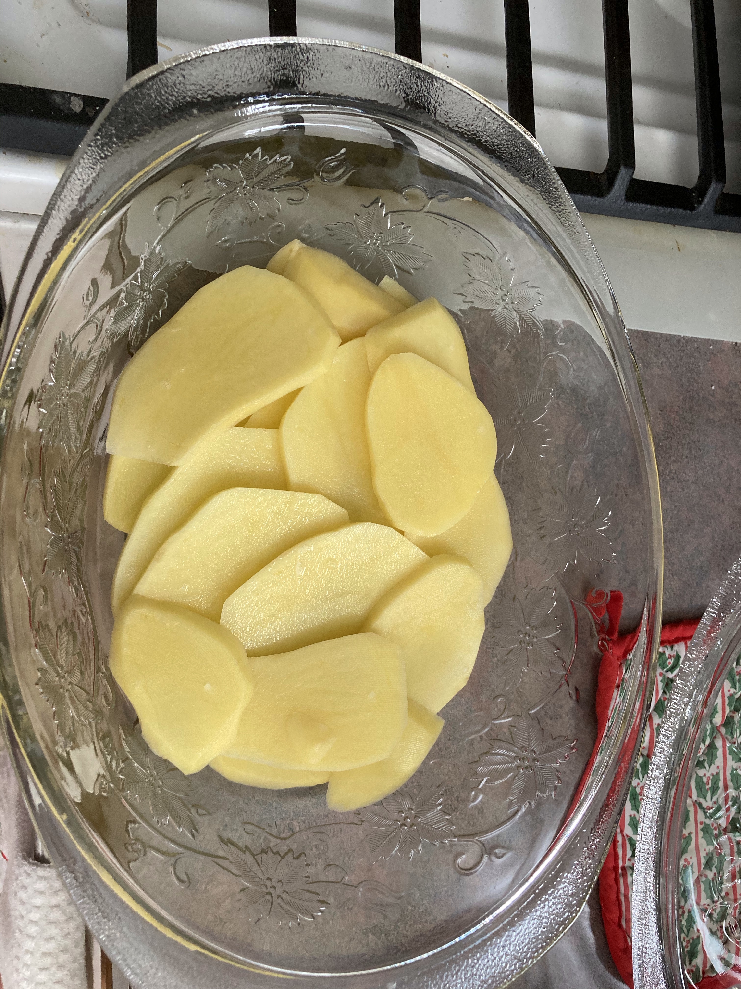 - 1 pound potatoes, peeled and sliced 1/4”