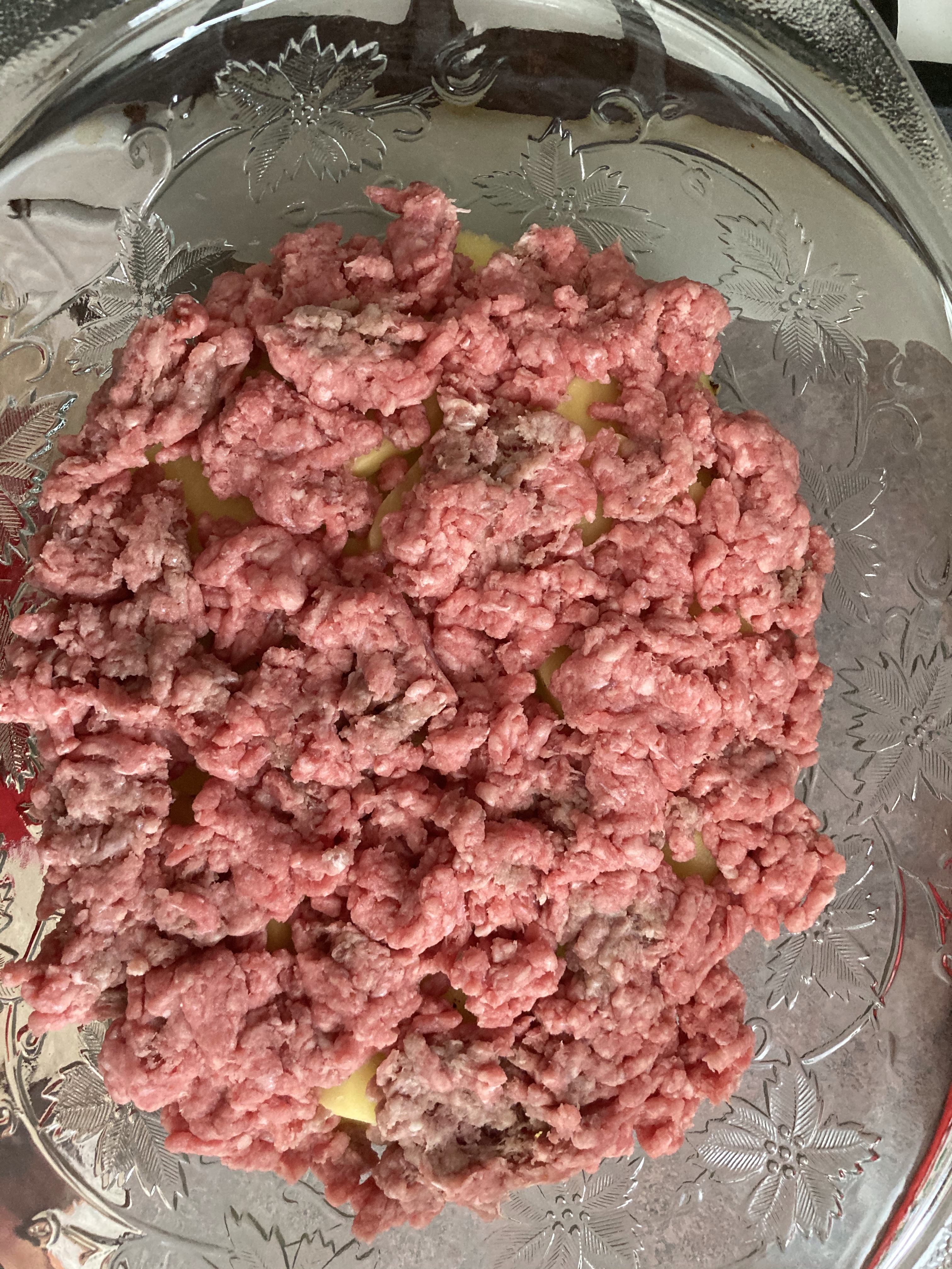 Today I made one I call Philly-Cheese Casserole. You can modify this versatile dish in many ways to suit your tastes. Just follow the basics: Layer potatoes, ground meat, aromatic vegetables, and top with cheese. Bake covered at 350°F for 70-75 minutes.